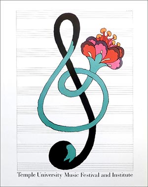 60x90, 1989, added: same artist & size, Saratoga Festival, 1980; Great Illustrators of Our Time, 1982; The New Mechanic Baltimore, 1979; Juilliard (ladder), 1989