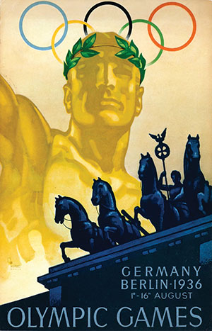 62x100, 1927, on linen. After 10,000 posters were distributed in 1928, it appeared that the runner in the image was a ?pacer? and therefore the entire run had to be quickly destroyed. Accordingly, this has now become one of the rarest Olympic posters