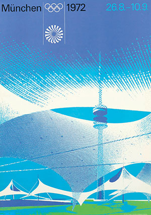 "59x84, 1971, added: same size and topic, G. Cranham, equestrian sport, 1970; O. Aicher, Olympiastadium, 1971"