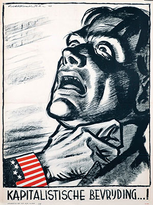 "80x111, 1945, added: same size and topic, K. Thole, Gifhandel vergalt den Vrede; E. Doeve, Gifhandel vertraagt het Herstel, both 1945/1946"