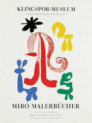 "43x60, 1974, added: same artist, Fundació Joan Miró Barcelona, 50x70, 1976; Klingspor Mus. Miró Malerbücher."