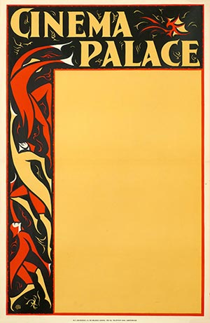 66x100, on linen, added: same artist, size and topic, Cinema Palace (Haarlem) and Cinema Royal (Amsterdam), all ca. 1930, all linocut